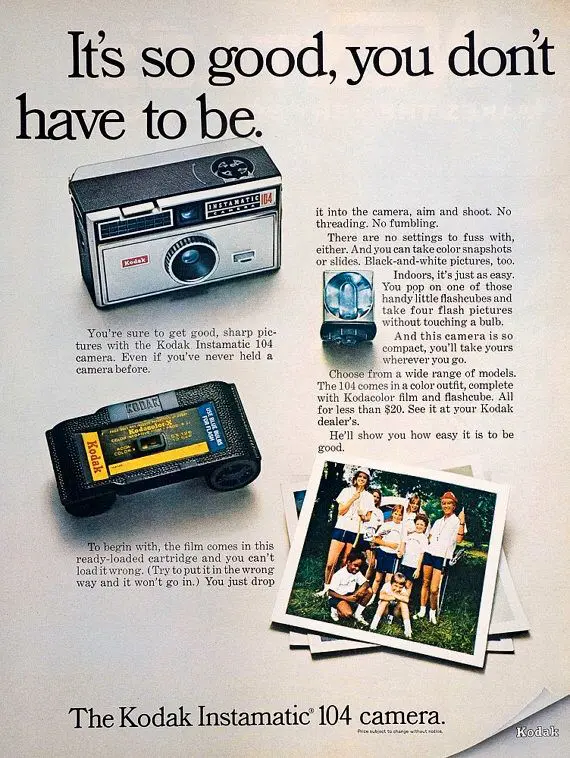 - 1963: Kodak introduces the Instamatic camera with easy-loading cartridge film.