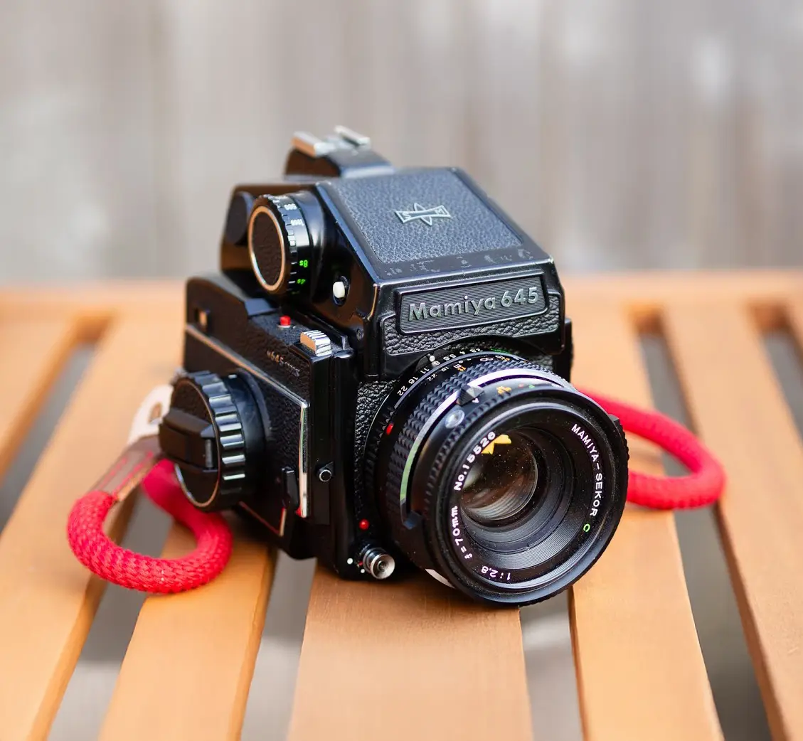 The Mamiya 645 revolutionised medium format photography with a more compact and affordable system bridging the gap between 35mm and larger studio cameras. This modular system offered interchangeable film backs and viewfinders while delivering exceptional 6×4.5cm negatives with 2.7 times more area than 35mm film.